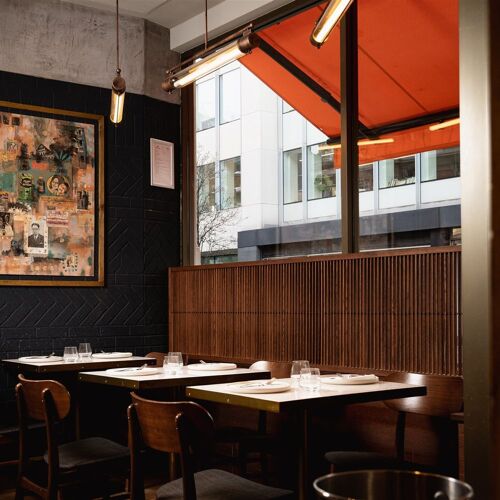 This extremely colourful, comfortable restaurant in the heart of Fitzrovia is modelled on the communal living ‘building societies’ of Bombay, and comes with striking posters, a relaxed ambience and an intimate basement bar. The menu is divided into ‘small’ and ‘big’ plates and sharing is encouraged. Dishes are confidently executed, easy to eat and full of fresh, regionally inspired flavours.