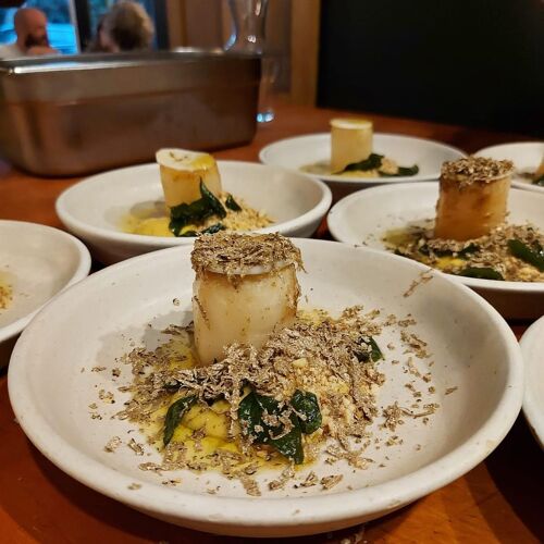 With seating for just 18 people and a logo rather than a sign outside, it’s clear that understatement and simplicity lie at the core of this cosy and very likeable restaurant. Diners are asked to arrive at 7.30pm as dinner is served to everyone at 8pm; the 4 course, weekly-changing menu offers no choice and you pay when you book. From the tiny open kitchen you can expect nourishing and heartwarming dishes like succulent Blackface lamb with Hasselback potatoes and wonderfully light blood orange & brioche pudding.
