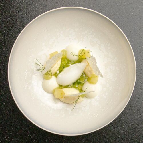 Steven Klein Nijenhuis's commitment to sustainability is apparent as soon as you enter his restaurant. He no longer serves dairy, beef or pork; instead, he lays the focus squarely on vegetables and fruit. His creativity and penchant for working with Asian ingredients make for dishes that are full of surprises and frequently have an unusual umami twist. Techniques such as pickling and the subtle use of seasonings such as sambal give local ingredients an extra dimension. He incorporates locally foraged lion's mane mushroom, for instance, into an intensely flavoursome dish with onion dashi, fermented black garlic and apple, crispy potato and dried leek powder. The chef is a real beer lover, so it is well worth perusing the beer menu to find the perfect beverage accompaniment. This stylish listed building (1735), with its grand chandelier, exudes the atmosphere of an inviting inn. The cosy lounge is the perfect place for a digestif or coffee by the fire. Should you wish to extend your stay, there are lovely guestrooms available.