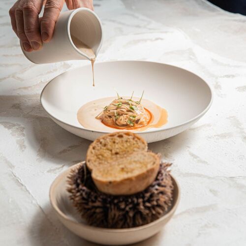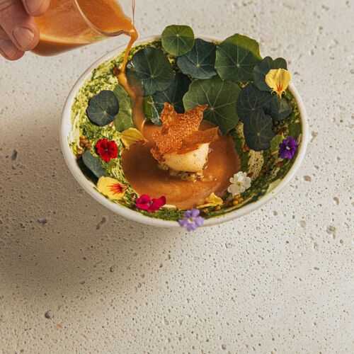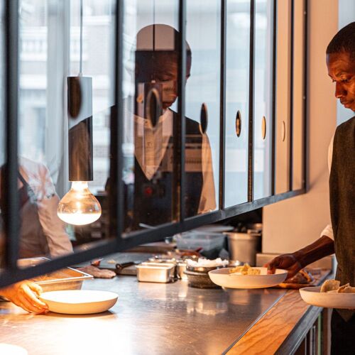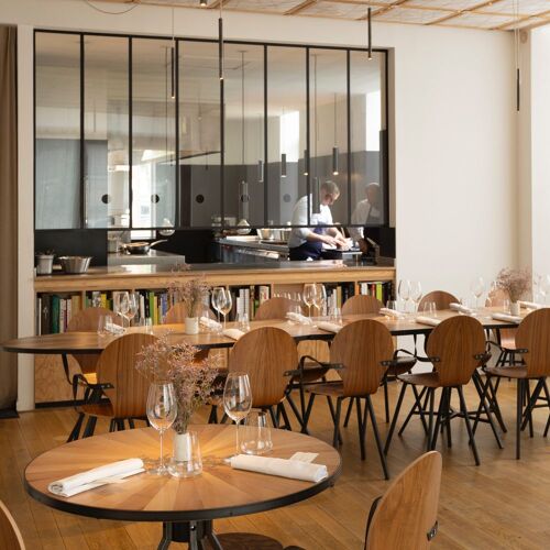 Established in an entirely rehabilitated industrial wasteland (an early-20C textile factory), chef Félix Robert and his wife Nidta, having previously worked for Alexandre Gauthier at La Grenouillère in Tokyo and then at Troisgros, now give free rein to their talents in a stripped-back, stylish interior. The chef's creative and personal repertory is dominated by seafood and vegetables and liberally scattered with nods to Japan and Asia – tempura, bao, Vietnamese coriander and Thai curry are unveiled in set menus. One example is lightly seared langoustine, flanked by a frothy rhubarb jus and subtly perfumed with ginger – stunning and oh so convincing! A restaurant whose dazzling success is well deserved.