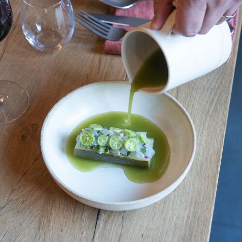Antoine Dacquin and Pierre Bleuzé, Lille-born chefs and partners here, first became friends in the kitchens at Bloempot, Florent Layden's restaurant. During service, one of the pair oversees the restaurant floor, the other cooks. Through their surprise menus, at lunchtime and in the evening, they are making waves with dishes cooked up using quality farm produce – seasonal, of course! Roasted aubergine, rouille sauce, samphire and bouillabaisse broth; confit cod, roasted leeks, Swiss chard, marjoram béarnaise: a meal replete with indulgence and joy.