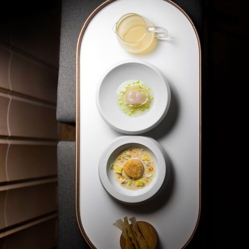 Chef Diego Delbecq and his pastry chef partner Camille Pailleau have channelled all of their energy and talent into this former printing works, turning it into a loft-style restaurant, with tables set out beneath the vast glass roof and its metal beams. Lovely hardwood floors, light-coloured walls and large kitchens separated by glass panes from the elegant dining area, which has a mezzanine on which hors-d'oeuvres are served with the aperitif during the evening service. The chef cooks up creative, inspired and delicate cuisine that shows a penchant for sauces, tangy and bitter notes, condiments and peppers – plus the obligatory nods to the cuisine of this northern region of France (eg endive, tarte au sucre). And he does so with a striking sense of balance when it comes to flavours. For example, Cobrieux asparagus with fresh mint and lime condiment, or roast chicken with peas and meadowsweet sabayon. Regulars can rest assured that the two signature dishes are present and correct: the "terre & mer végétal" starter ("plant-based surf 'n' turf") and the heather honey dessert. Friendly service.