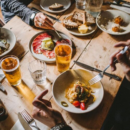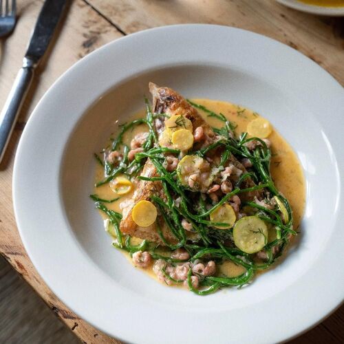 Nestled in a lush valley bordered by the Black Mountains, this former drovers' inn is separated from Hay-on-Wye by a six-mile single-track road. It retains a homely charm, boasting flagstone floors, slate walls and open fires. Unfussy, ingredient-led cooking is natural, wholesome and full of flavour, with meats from the owners’ farm, homemade charcuterie and a traditional roast on Sundays. Low intervention wines feature alongside a fine selection of beers. Book one of the cabins to allow more time for countryside exploring.