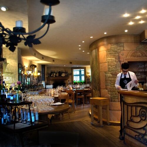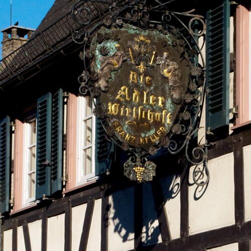 Established in 1993, Franz Keller's family-run Adler Wirtschaft is an institution in the region. Inside this charming little half-timbered house, the atmosphere is cosy and down-to-earth – traditional tavern culture is still alive and well here. The concept: you choose dishes to make up your own fixed-price menu. There are also mouthwatering steak options. They use pork from Bentheim Black Pied pigs and beef from Charolais and Limousin cows, sourced from their own farm in the Taunus region (Falkenhof). NB: The whole table will be billed together; credit cards not accepted.
