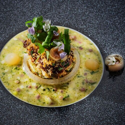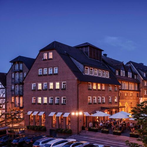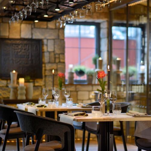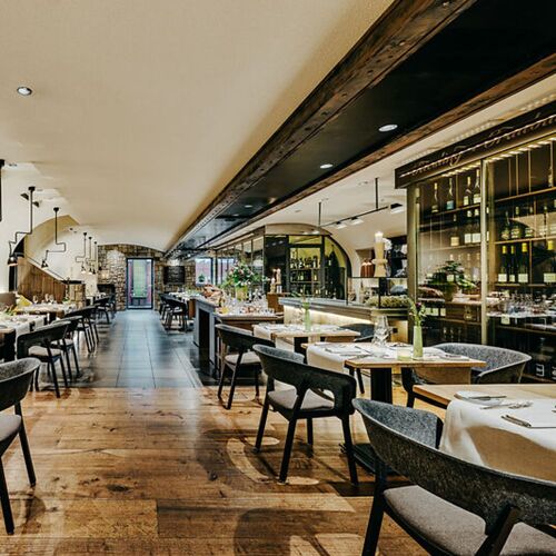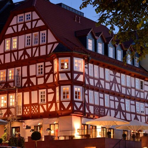 The three lovingly restored historical houses in the middle of the charming old town are really something to behold. Here, the tasteful Hotel Sonne has various catering options, including this restaurant. The fine dining restaurant in the basement of the centuries-old Stadtweinhaus is chic, modern and pleasantly laid back. (If you are not coming from the hotel, you get to the restaurant via Untermarkt.) In the open kitchen, Erik Arnecke oversees the preparation of a creative five-course set menu. Dishes such as North Sea plaice with Irish rock oyster, bacon emulsion and watercress cream are brimming with harmoniously combined flavours. Upgrades include Japanese Wagyu beef and an international selection of cheeses. There is a good choice of wines. Tip for fine dining novices: come on a Sunday afternoon for the three-course set menu. In case you were wondering, Philipp Soldan is the sculptor, whose carved wooden figures adorn the town hall.