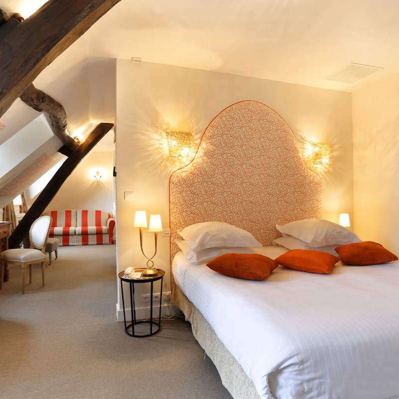 The hotel has grown over the years, adding a handful of additional houses to the original coaching inn. The rooms, across all of the buildings, combine antique charm with contemporary focus, and the comforts are subtly upscale. There’s a heated swimming pool as well as a tranquil little wellness area, and a bar for a pre-dinner apéritif or an after-dinner nightcap. There’s also a vegetable garden where much of the restaurant’s produce is grown — and from this location, the best of the Loire valley, from chateaux to wineries to nature reserves, is right at your feet.