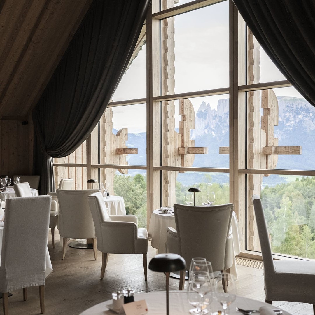 Adler Lodge Ritten occupies a wooded Alpine glade just outside Bolzano, Italy, where Italian and German cultures intermingle freely in the shadow of the Dolomites. The concept is a timeless one, as is the execution; the style blends the region’s typical warmth with confident contemporary design. It’s a winning formula, with storybook vistas that can be seen from all over the property, including the all-season infinity pool and the extensive wellness complex.