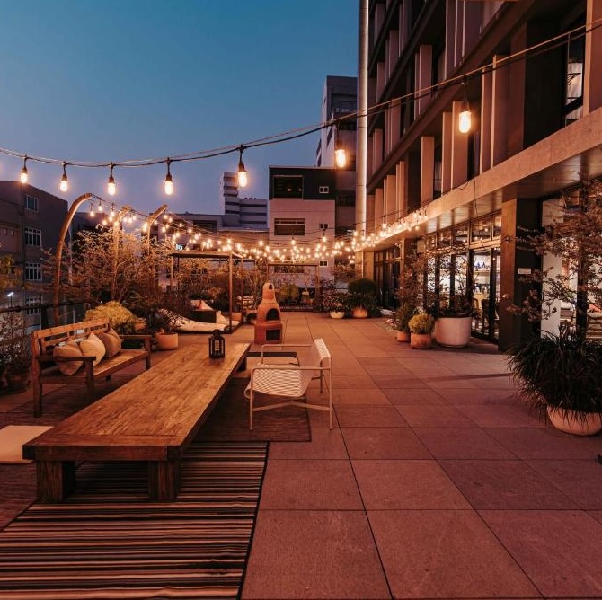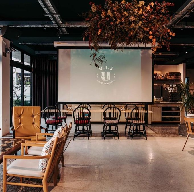 U.I.J Hotel & Hostel in Tainan blurs the line between backpacker lodge and boutique hotel, with hostel beds and private rooms spread across five configurations. The deluxe rooms come with Crosley turntables and a curated vinyl collection. Hostel bunks feature 120cm-wide berths with canvas shutters from a local shop. Communal spaces include BBBooks, a 24-hour library lounge, an open kitchen stocked for guests who shop at the adjacent traditional market, and a rooftop terrace facing west. The property sits near Tainan's older districts, close enough to temples and narrow lanes that you can disappear into the city on foot and return before the record finishes playing.