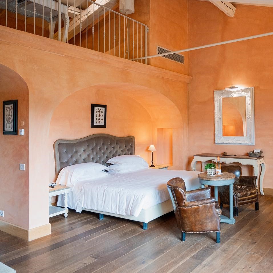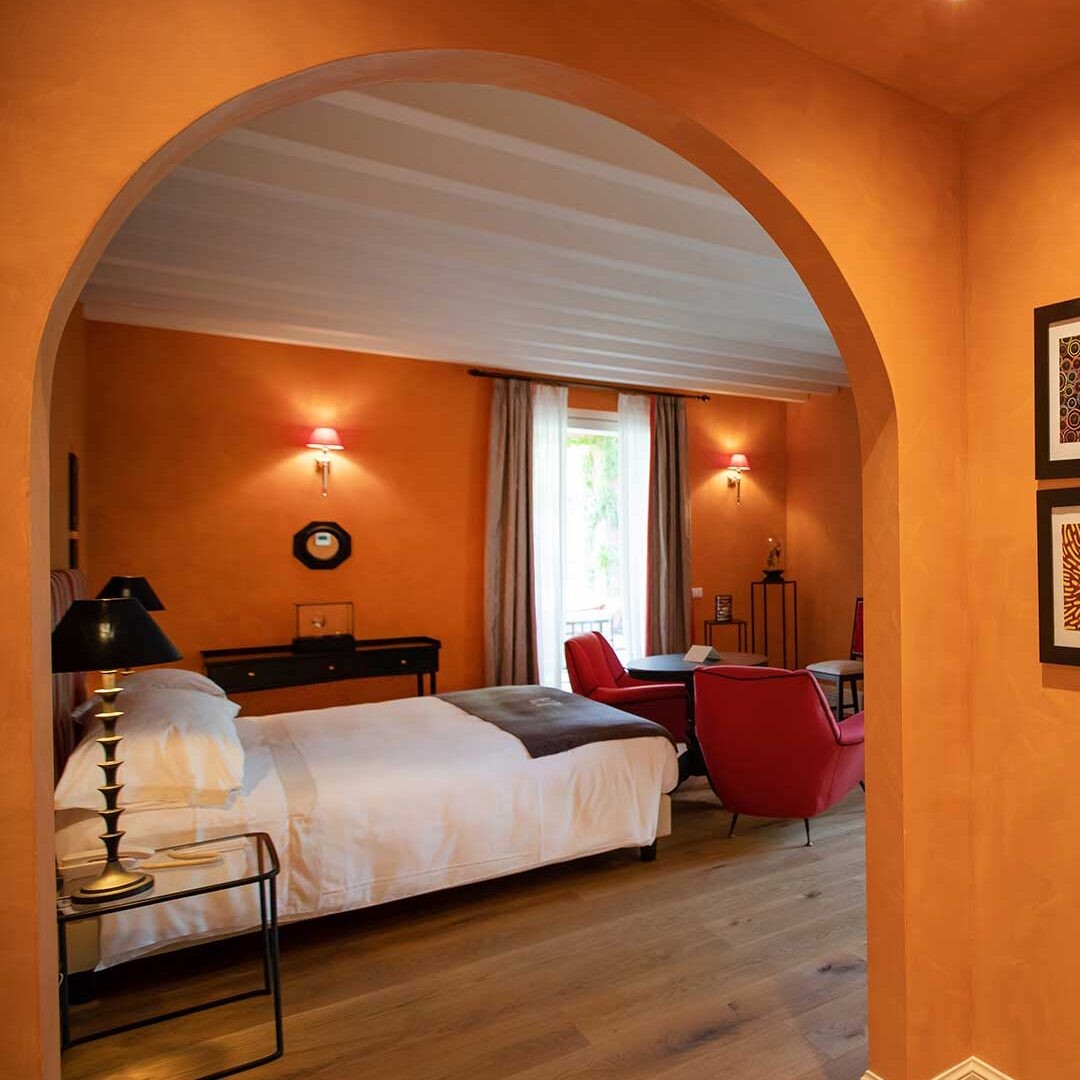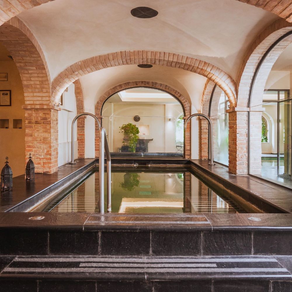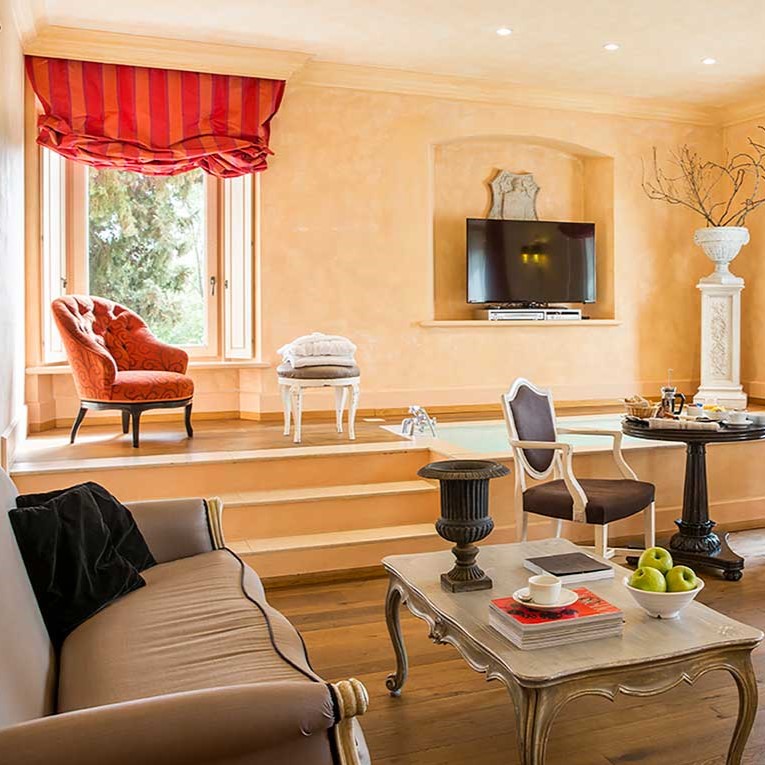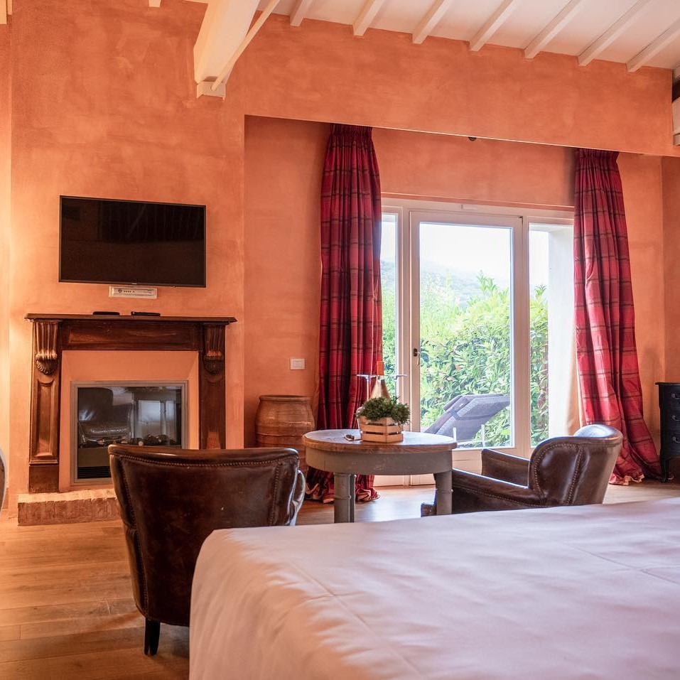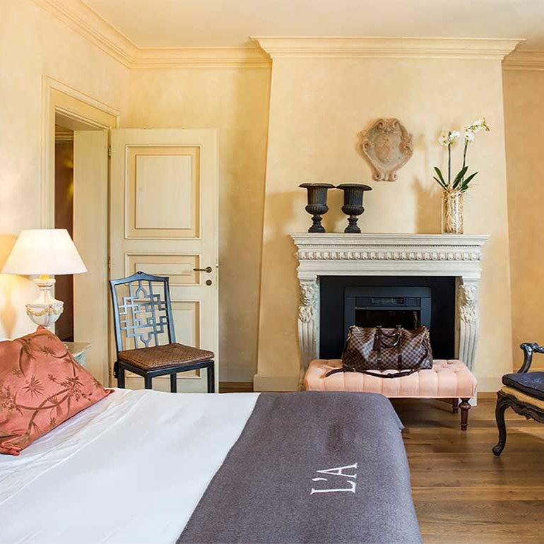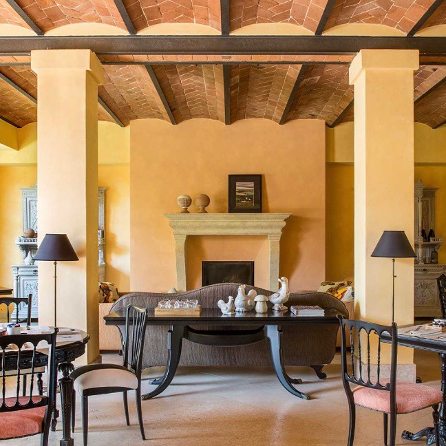 This is the quintessential Tuscan landscape, where the sun hangs low over the foothills, casting its golden light over rows of grapevines and olive trees. And it’s apparent upon arrival that you’re on to something special — the half-mile driveway, lined with cypresses and umbrella pines, makes for a stunning first impression. The hotel itself amply delivers on this promise, with its rooms and suites spread across the duke’s old villa and the connected farmhouse. The interiors, by Ettore Mochetti, the chief editor of Architectural Digest Italy, are sophisticated, eschewing faux-rustic country clichés in favor of a more urbane and opulent look.