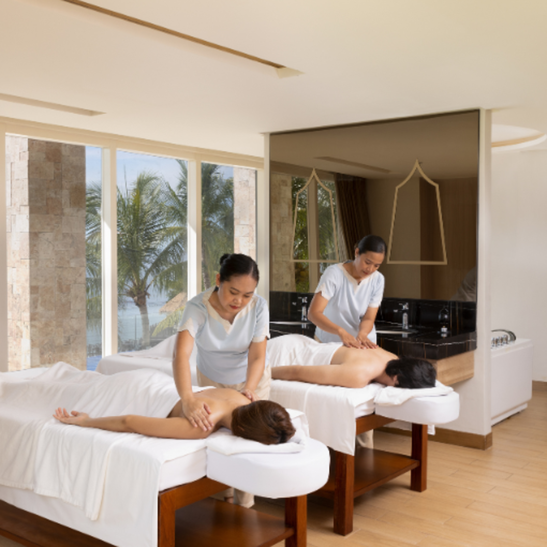 Rooms are bright and comfortable, many with balconies made for sunset-watching. Spaces are generous, especially in the suites, and the Namm Spa is everything you could ask a Thai hotel spa to be.