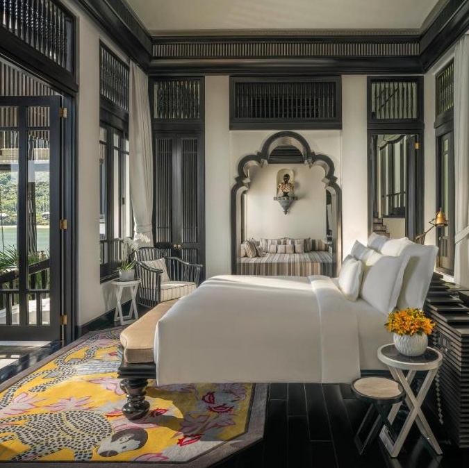Set up on a cliffside above its own private bay, InterContinental Danang Sun Peninsula Resort sits surrounded by lush mountainous rainforest and sweeping sea views. The mix of rooms, suites and private penthouses and villas take design cues from traditional Vietnamese architecture and come with guaranteed bay views, including from the huge marble bathtubs and larges terraces that overlook the gardens and sea. Penthouses and villas also come with luxurious extras such as private infinity pools, rooftop terraces, and their own saunas, steam rooms and Jacuzzis. There are four restaurants and two bars, including the One-MICHELIN-Star La Maison 1888, and of course in a setting this idyllic, there’s a comprehensive spa with a yoga pavilion, tai chi and meditation sessions, and treatments rooted in sound healing and traditional Vietnamese and Thai rituals.