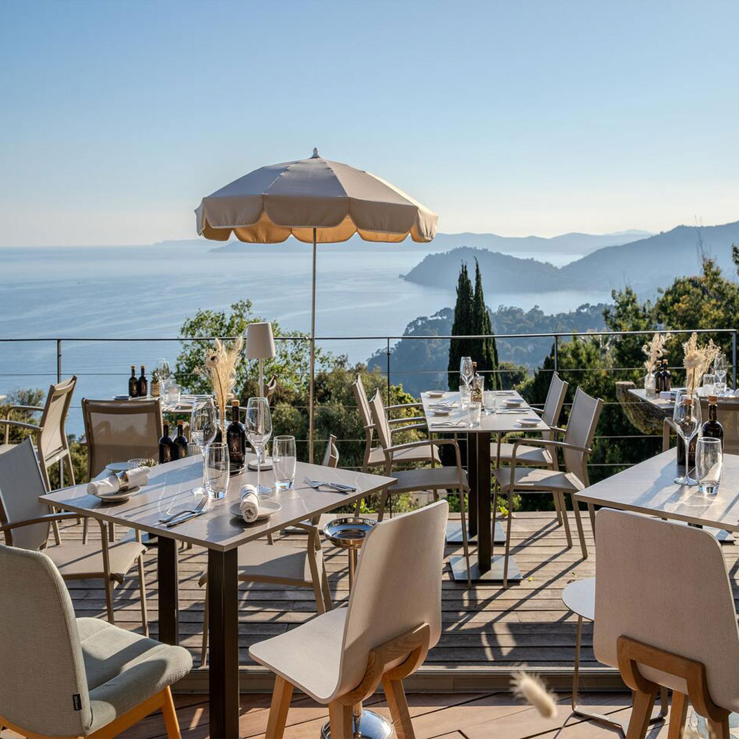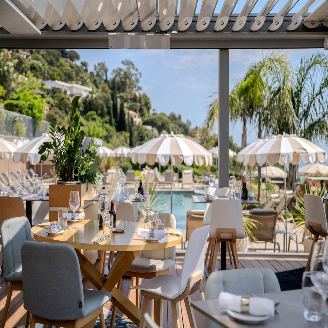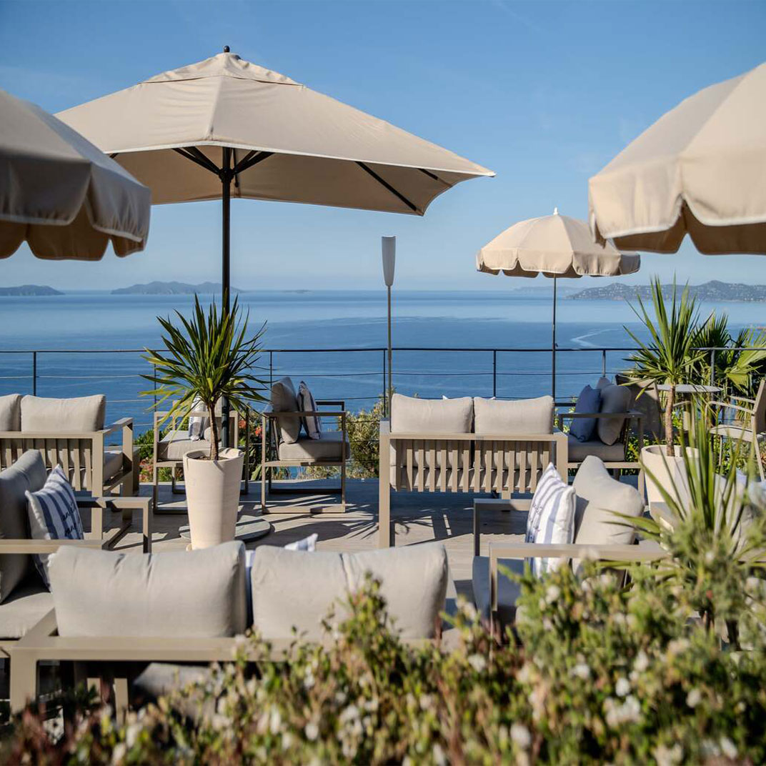There’s a pool, a solarium, and a treatment room for spa services, while a shuttle connects the hotel with Rayol Beach. Le Club Papillon serves breakfast on the terrace facing the sea, and becomes a cocktail bar in time for an apéritif; Restaurant L’Envol is open to the public for lunch and dinner on its own terrace, and features a seasonal, organic menu with vegan options courtesy of chef Clement Torrente.