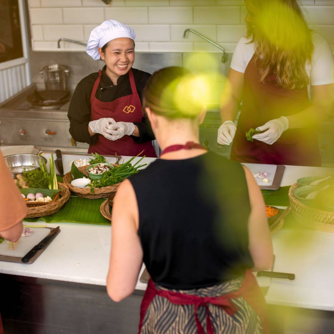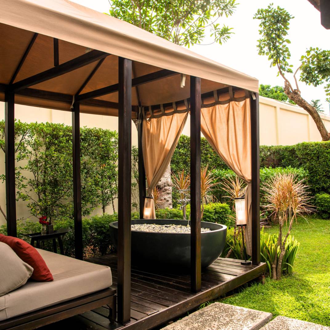 Only some of them come with private pools, but all are indulgent in their own way, with private gardens and spa-like bathrooms. Of course there’s a proper spa as well, for when “spa-like” isn’t quite enough, and a main pool for a more serious approach to swimming. Add a fine restaurant and lounge, as well as a cooking school, and the culinary angle is more than covered — especially when you add the restaurants at 3 Nagas, the sister hotel, just a few minutes down the road.