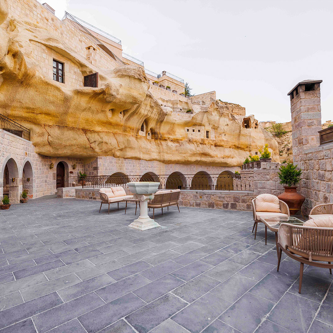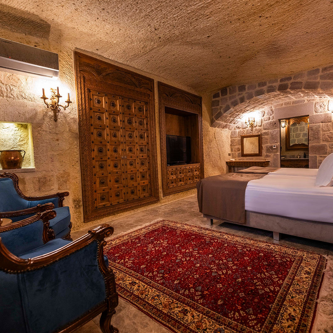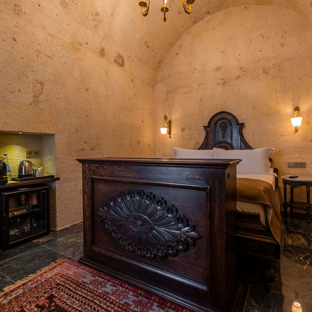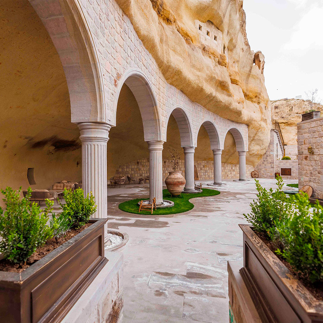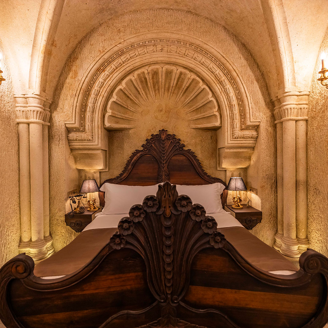 The cave hotels of Cappadocia are one of the travel world’s favorite stories, and it’s not hard to see why: subterranean suites, stone walls, and picturesque rock formations make for an irresistible setting, and the fact that the skies are dotted with hot air balloons is an unexpected bonus. Signature Cave Cappadocia combines the rough-hewn walls and hand-built construction of the classic cave hotel with an extra measure of elegance, from its fluted columns to its antique-inspired furnishings and ornate en-suite woodwork and carvings.