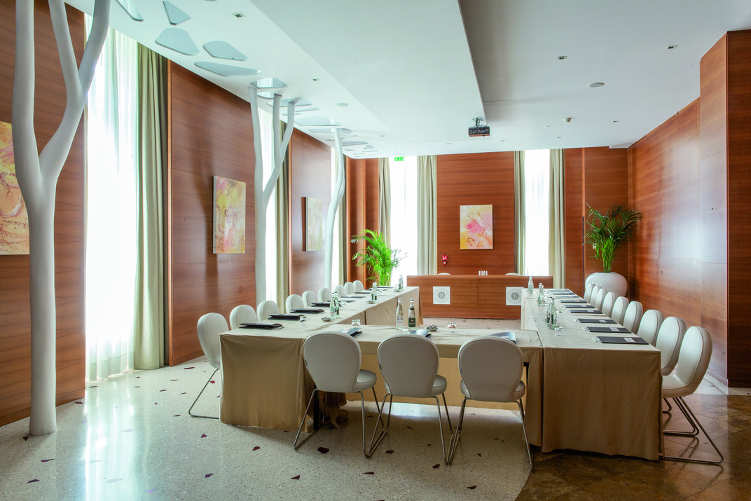 To precisely duplicate the original Exedra, on the Piazza della Reppublica in Rome, would be a strange proposition for Nice — how would its monumental colonnaded grandeur translate to this sunny seaside town? It’s a question that’ll never be answered, as the actual Exedra Nice turns out to be a very different animal. For while the exterior is certainly grand — though Belle Époque grand rather than Italian Republic grand — the interiors, thoroughly renovated, present a face that’s quite a bit more contemporary.