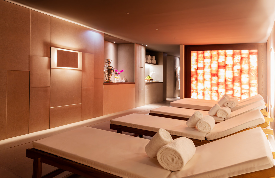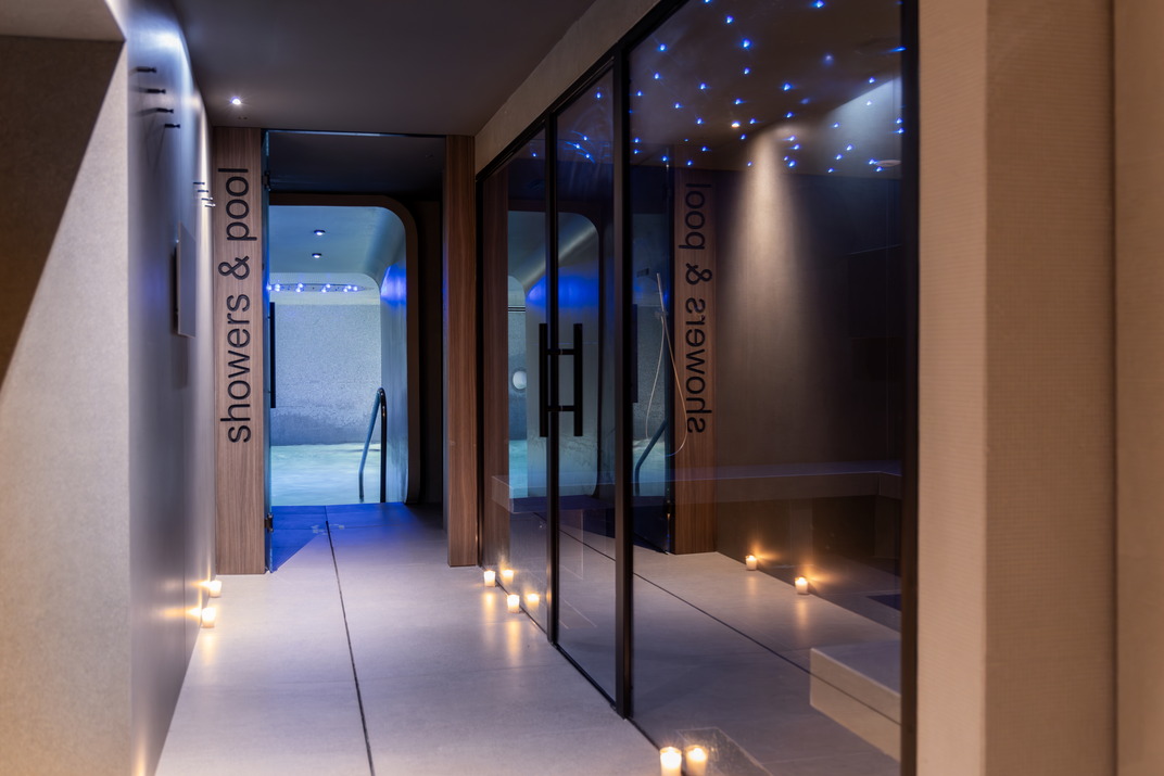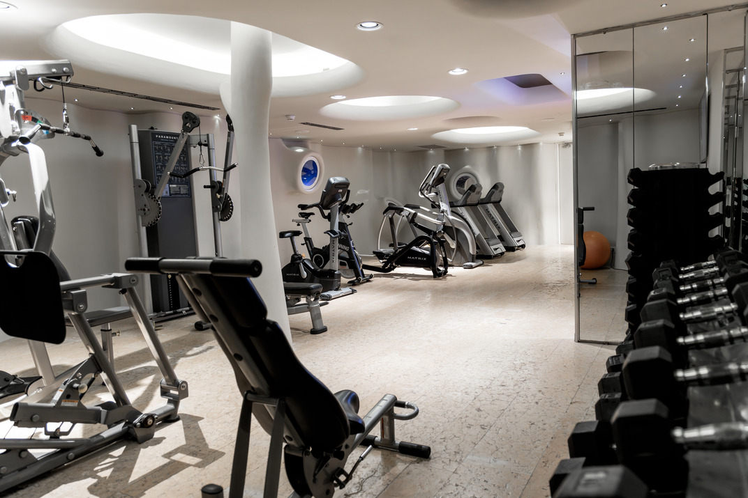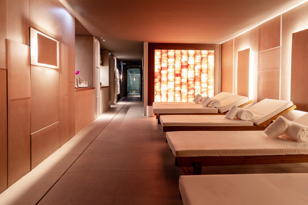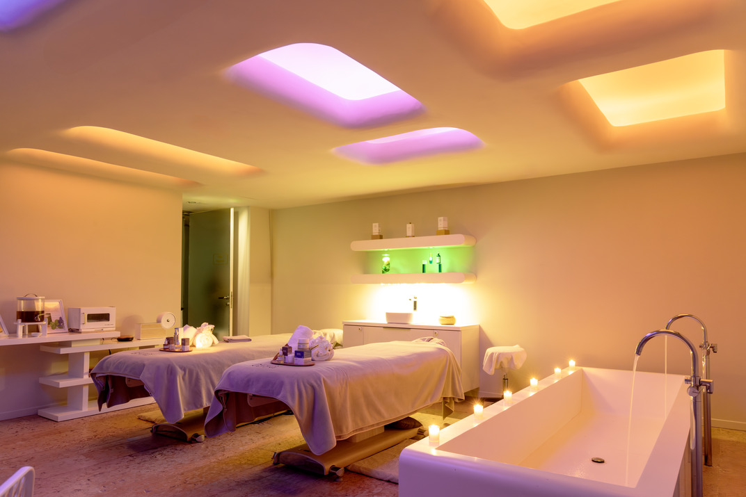 The rooms still show the occasional rococo flourish, as in the ornate headboards, but the overriding atmosphere is one of spare and sunny Mediterranean minimalism. In the public spaces things get even a bit more modern, with organic rounded forms, and the restaurant contrasts crisp clean lines with rustic weathered floorboards. The spa is almost futuristic, especially the wet room, which looks like a film set from an unmade Drowned World adaptation.