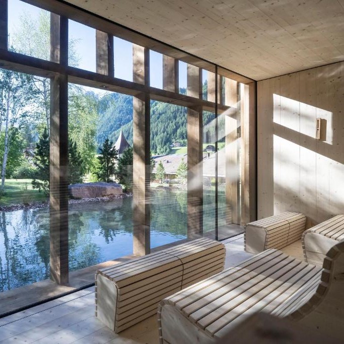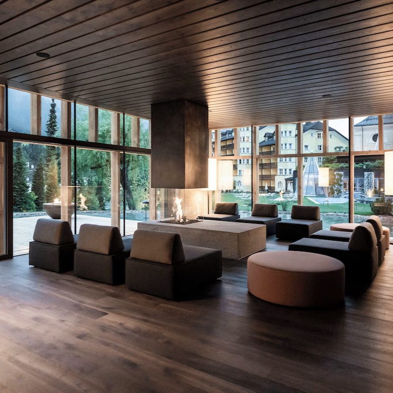 In the Dolomites’ Val Gardena, Adler Spa Resort Balance is designed as a retreat for those who take wellness seriously. The atmosphere is calm and adults-only, with light-filled rooms in wood and stone, each with balconies. At its core is a vast spa with thermal pools, saunas, and salt grottoes, complemented by the Adler Med program, where doctors coordinate nutrition, exercise, and restorative treatments. Add in lounges lined with books and panoramic windows, and the resort feels as much a place to restore as to transform.