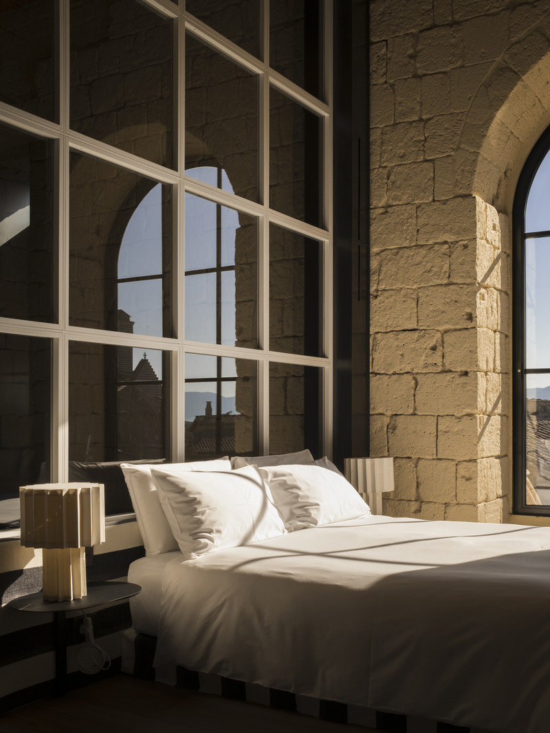 Long abandoned and once home to Renaissance notary Petrvs Facienus, this 16th-century palazzo in the heart of Orvieto has been brought back to life with meticulous effort. Behind its carved stone doorways lie frescoes uncovered beneath centuries of plaster, coffered ceilings restored by hand, and striped textiles. Each of the nine rooms balances restraint with richness; even the restaurant, set in a deconsecrated church, feels conservatively theatrical. Centuries of history, holding their ground in the shadow of the Duomo.