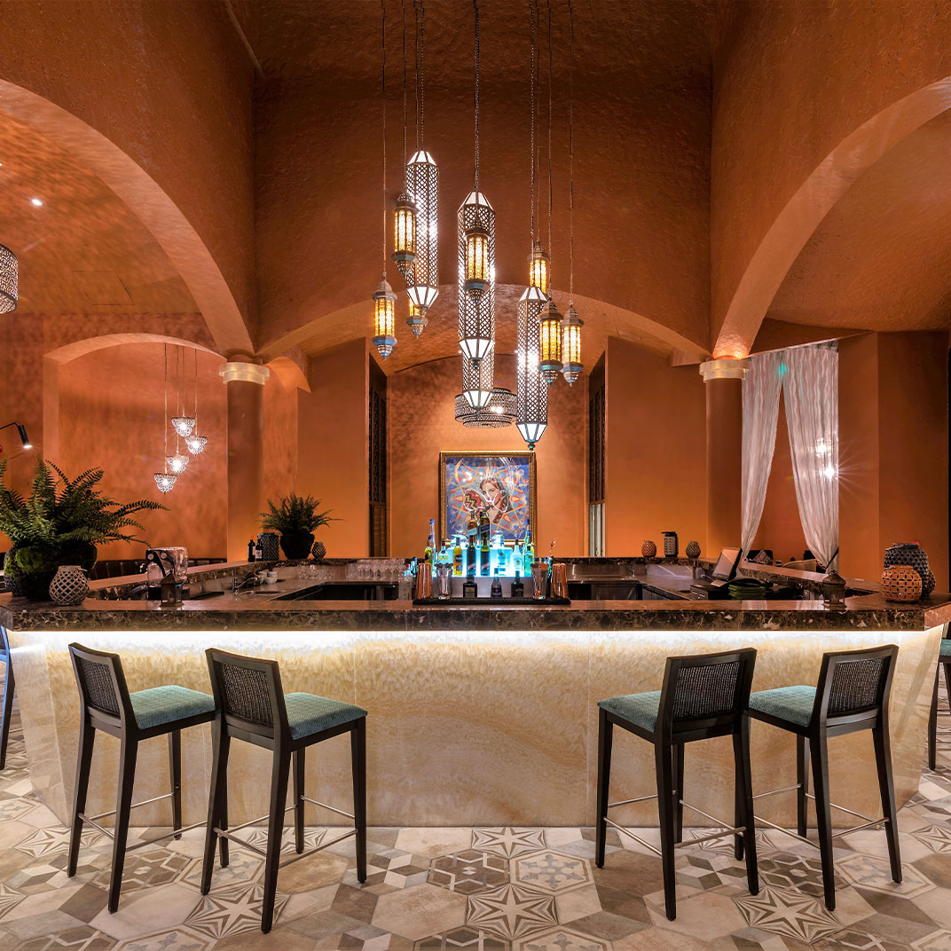 Meals at the resort’s several restaurants are experiences unto themselves. One night it’s top-flight international cuisine in the ornate Arabic-style dining room at the Al Waha restaurant, the next it’s Thai food at Safran restaurant on the banks of the watering hole, where a romantic dinner eventually gives way to some low-key, wine-in-hand wildlife spotting. Then there’s the option of a private, open-air barbecue at your villa. The night skies in the dark of the desert are stunning. Dubai’s mega-palaces can have their six or seven stars; Al Wadi has the whole milky way.