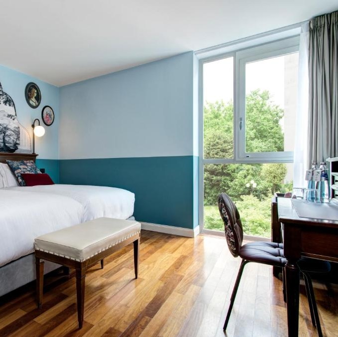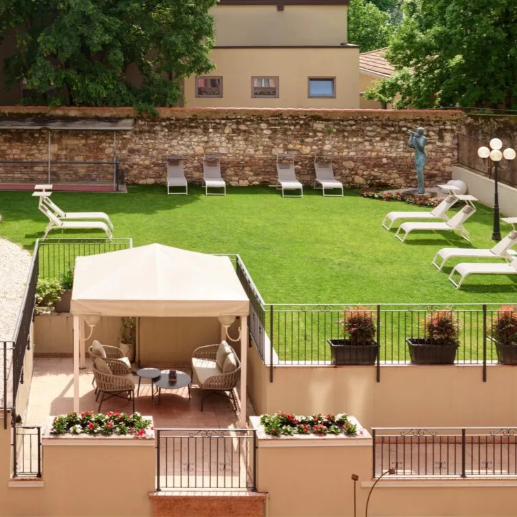 Situated on Corso Porta Nuova, which leads directly to three of Verona’s major attractions, the Porta Nuova, Piazza Bra, and the Roman amphitheater, the Arena, Hotel Indigo Verona - Grand Hotel Des Arts is well situated for sightseeing. As the name suggests, art can be found throughout the 1920s Liberty-style building, while rooms feature a mix of classic and contemporary design elements that include ornately curved headboards as the decorative centerpiece. Bar Arya takes its design inspiration from the Opera “Romeo and Juliet” and serves light bites and drinks. There's also an outdoor terrace for summer, and a pleasant private garden and solarium.