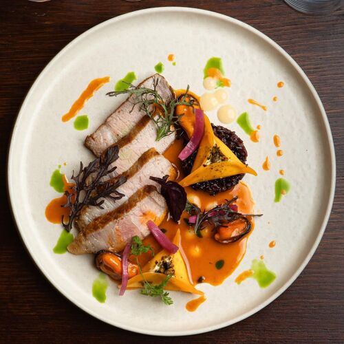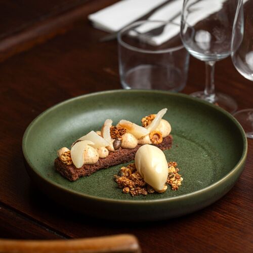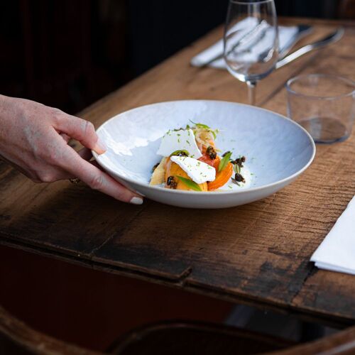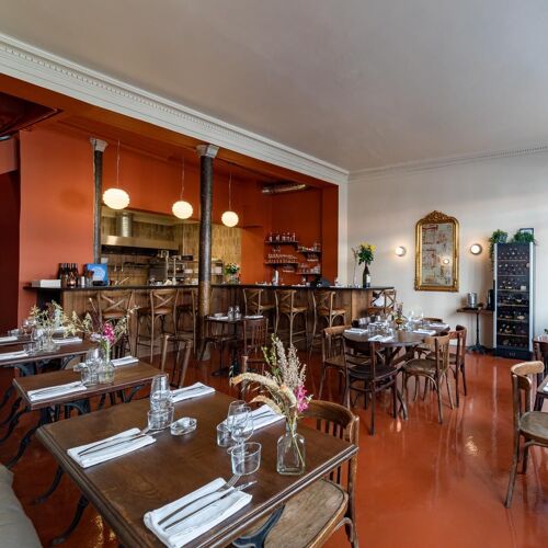 Two partners have created a setting typical of eastern Paris: large bay windows, rough stone walls, bistro-style tables, an open kitchen at the back with a few spots at the counter. The creative cuisine is peppered with influences from near and far – a throwback to the chef's time working for Pierre Sang: think skewer of king trumpet and oyster mushrooms, crunchy vegetables, peanut and nuoc mam sauce; gratin of confit ox cheek, macaroni, parmesan, Roscoff onions and jus court; tarte Tatin-style apples.