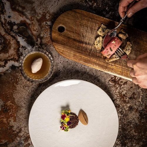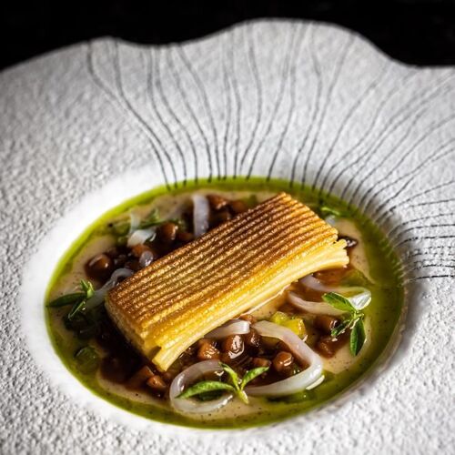 This restaurant, whose name is a nod to the nearby Assemblée Nationale, sports a minimalist interior that mixes marble, 1970’s furnishings and Lalique light fittings. The savoury score is the work of Italian chef Flavio Lucarini (from Bistrot Flaubert and Jérôme Banctel’s Gabriel), while Aurora Storari (former head pastry chef at Le Clarence) is in charge of desserts. The chef's cuisine is certainly Gallic, but personal and subtly Italian thanks to acidic, bitter notes, as in the watercress risotto and squid alla Luciana with black lemon powder, or pigeon, cherry kosho, the leg as a tempura, crispy aubergine raviolo. Aurora’s creative desserts demonstrate bags of personality, illustrated by plum confit with hibiscus and sesame crème brûlée.