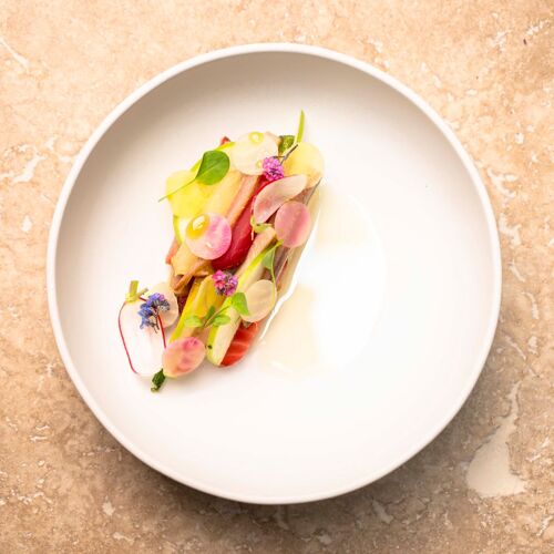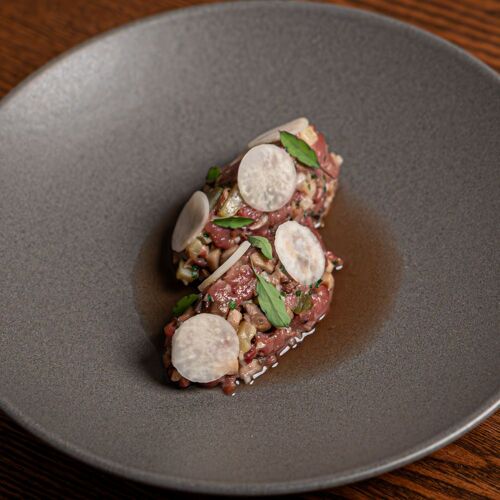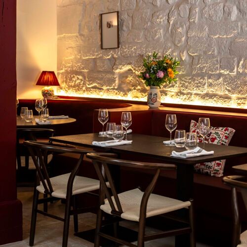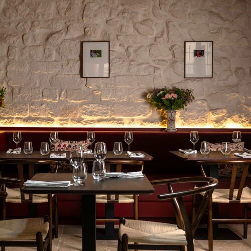 Polish chef Piotr Korzen hosts diners in this old building on a narrow historical street dating back to the 13C. The space is an ode to his origins, with exposed stonework and beams, red leather banquettes and, the icing on the cake, an earthenware stove typical of Eastern European. A tribute to his mother's cooking (matka is Polish for "mother"), the menu is a culinary journey, comprising neatly plated dishes that whet the appetite: a rustic sourdough soup, potatoes, shredded dried pork belly and slow-cooked egg, pierogi ruskie (potato and cheese dumplings), grilled onion and sour cream. To finish off, the szarlotka – apple and cinnamon cake with vanilla ice cream – is made according to a comforting family recipe.