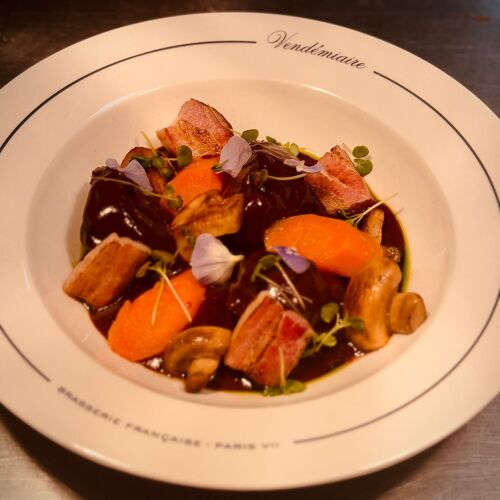 Just a short walk from Napoleon's tomb, this restaurant takes its name from the month of the French Revolutionary calendar associated with the grape harvest. Done out in blue and orange tones, the interior exudes a chic and friendly brasserie vibe and features an impressive marble bar and silky-soft banquette seats. On the menu, innovation meets classicism, and traditional favourites are given a subtle twist (egg mayonnaise, bavette steak, tartare, crème brûlée etc) with fresh, high-quality produce. Born here in the Gros-Caillou quarter, the owner works closely with shopkeepers and friends in the neighbouring streets. The bar menu (oysters, burgers, terrine etc) is available until late. Good value for money at lunchtime.
