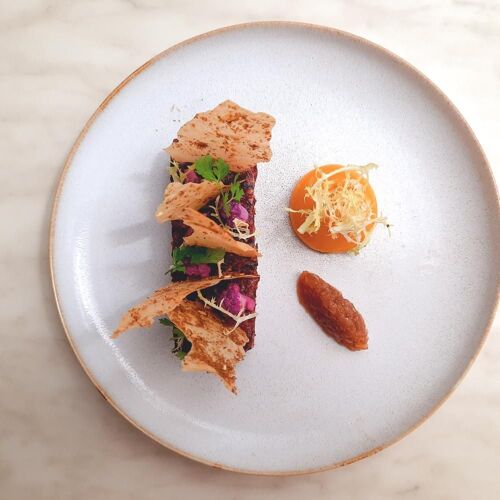 In the heart of Suresnes, chef Maxime Salvi creates modern, well-crafted, bistronomic fare (gloriously reasonably priced lunchtime menu). The flawless dishes highlight seasonal and top-drawer produce – tarragon and pistachio pork and poultry pâté en croûte with pickles; Bourbonnais pork belly, Jerusalem artichokes, carrots and red wine jus. In the evening, a more ambitious culinary score and a carte blanche menu that depends entirely on the chef’s mood await the diner.