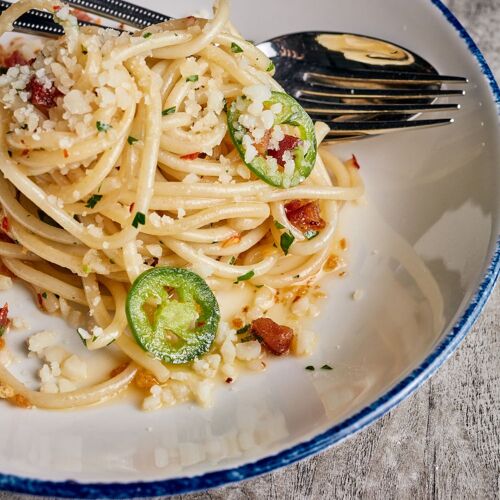 Kick things off with the excellent Jonah crab salad, served with soft waffle-cut potato fritters and freshly made cocktail sauce. Then move on to the “pici with chew,” where thick strands of noodles are cooked to a conservative al dente, and tossed with smoky bacon, chopped jalapeños and breadcrumbs.