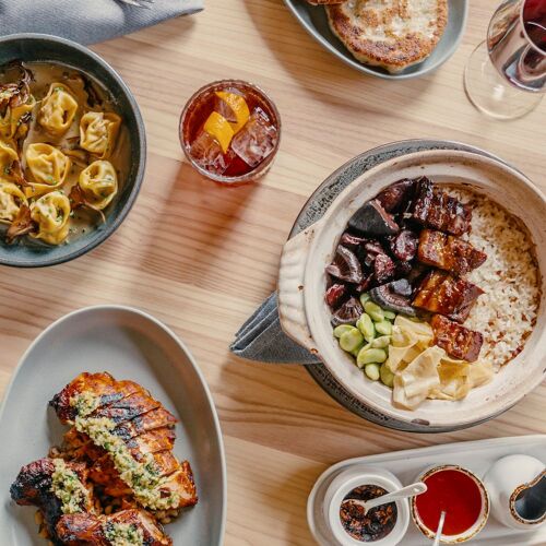 It can feel as if half the city is dining in this quiet pocket of West Loop. Conversation and laughter bounce off the hard warehouse floors and large, black-framed windows and travel along a bar that looks almost endless from the front door. The cooking behind all this commotion assuredly plays with Japanese, Chinese, and Thai elements. Think Japanese eggplant with scallion bread, sweet potatoes with Thai green curry, or soup dumpling tortellini with maitake mushroom. Turbot with Swiss chard and kombu beurre blanc was a recent standout. Servers are not fazed by the crowds, while bartenders shake and stir drinks that keep energy levels high. And in stark contrast to the industrial setting, a rooftop herb and vegetable garden helps stock the kitchen.
