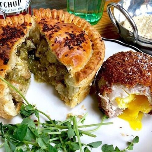 Classic English pies may be the specialty of this house, but don’t let that inspire visions of chintz and tea cozies—the interior here is decidedly modern, with marble-topped tables and hand-crafted pottery. The crowds come for the pies, and for good reason—they’re fabulous. The crust is flaky and buttery, and the inside, hearty and satisfying. Dig into the steak and ale, with its beef stew filling and side of minty peas, gravy and mashed potatoes, and you’ll be hunting for every last crumb. The comfort food hits also keep on coming, from rarebit mac and cheese with Trooper Ale cheese sauce, to the pub burger with a grilled double beef patty topped with cheddar and a tangy, smoky bacon aioli, to fish and chips on Fridays.