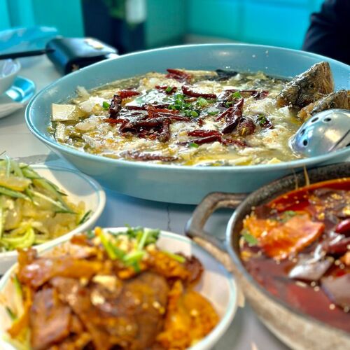Score one of the front tables for a view of the glass-enclosed kitchen, though the wood-crafted banquette is ideal for settling in. Yao Yao pickled fish is the signature dish here, and it comes in three sizes (extra-large feeds up to six people!). Fiery and potent, this plate delivers a one-two punch with a funky seafood quality and the sharp tang of sour greens. Choose the "two flavored pickled" for a taste of Yao Yao pickled fish and boiled beef in a spicy Szechuan sauce. Wontons in chili oil are a no-brainer, and tere are also a slew of sides, ranging from celtuce and dry bean curd skin to seaweed knot and konjac noodles to round out the meal.