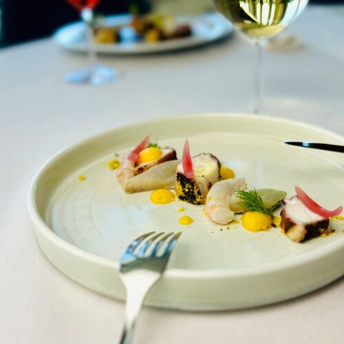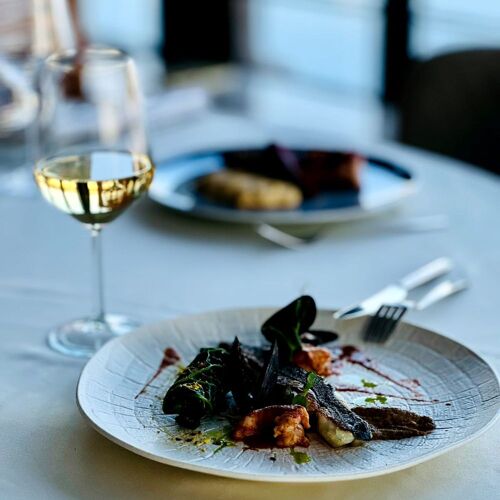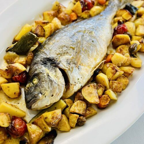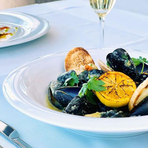 This century-old restaurant in the modern resort of Ribarska Koliba (the name translates as Fisherman’s Hut) stands near the Marina Veruda, which can be admired through its large picture windows or from its attractive summer terrace. Delicious Mediterranean cuisine takes pride of place on the menu, ranging from pasta-based starters to fish and seafood dishes made from the freshest ingredients (the bouillabaisse is superb), although a few meat specialities also feature. Vintage car enthusiasts can also admire the Triumph Spitfire convertible that is “parked” inside the restaurant.