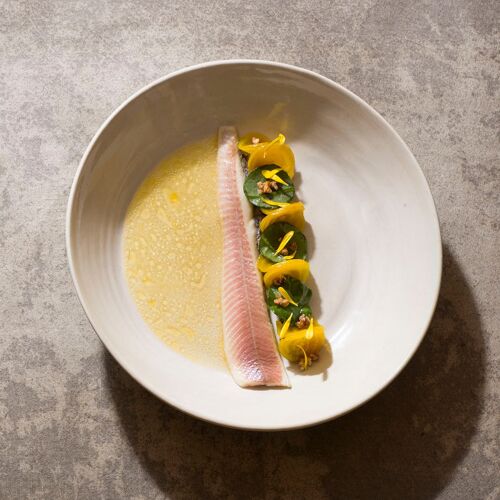Nothing could make more sense here in the picturesque Weissensee Nature Park than to align the kitchen philosophy with the natural surroundings – the name of the set menu "BERG.SEE.KÜCHE." ("MOUNTAIN.LAKE.FOOD.") doesn't give away too much. In six courses – plus extras – patron Hannes Müller brings his own signature to creations such as "rhubarb, mountain brook trout, carrot, yarrow, sunflower seeds" or "red cabbage, venison, celery, miso". Light, fresh dishes, flavoured with herbs from the immediate vicinity or fermented foods from the previous season. When it comes to the quality of the ingredients, the restaurant relies on personal links with producers, eg sourcing Krainer Steinschaf mutton from the family's own farm – Zöhrer-Bauernhof. The wine list is centred on Austria, but also includes natural and orange wines. Cordial hostess and sommelier Monika Müller's commitment is palpable. The view from the modern restaurant across the meadows to the lake is fantastic. Stylish and elegant accommodation is available in the hotel of the same name.