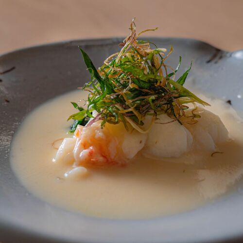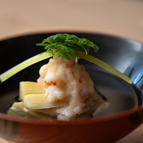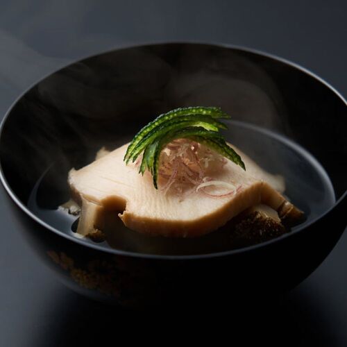 The chef is an earnest devotee of everything that makes a restaurant great, thanks to careful study of ingredients, culinary technique and attention to every customer. Recipes are tested over and over to get the flavour just right. Knowing that the taste of dashi soup stock changes over time, the chef patiently rests his stock to draw out the flavour. While known to refer to traditional methods, alternations between new and old are a signature of Nakamitsu’s menus.