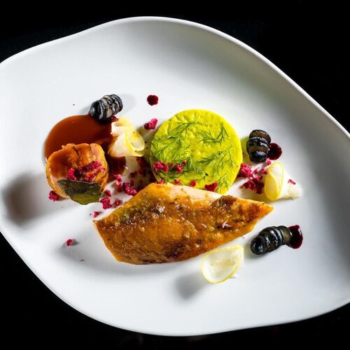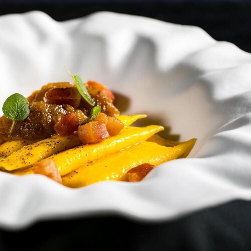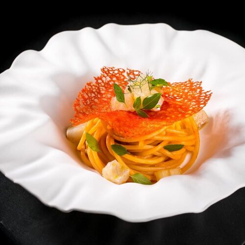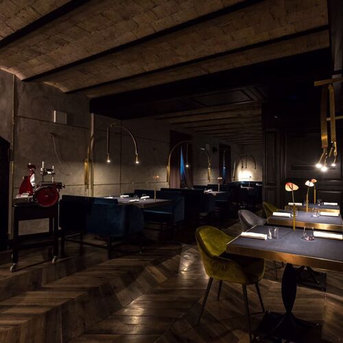 Housed in the basement of The H'All Tailor Suite, this restaurant boasts two contemporary-style dining rooms, with tables outside in fine weather. Here, Riccardo Di Giacinto serves regional and Italian specialities which he reinterprets with skill and flair, playing with traditional recipes and transforming these with surprising results. Including dishes such as a “summary” of carbonara, cappelletti in “dry broth”, Roman-style lamb, and tiramisù in both savoury (with potatoes and salted cod) and sweet versions, the cuisine here is both astonishing and satisfying.