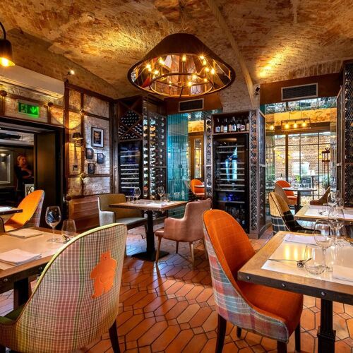 The beautiful vaulted, red-brick ceiling is a key attraction at this well-run and deservedly busy restaurant. An experienced chef takes traditional dishes and gives them a modern update, while using the best of the local larder and delivering plenty of flavour. Their house specialities include Dover sole cooked over a wood-fired grill and, as the name would suggest, Fiorentina steak, which is dry-aged for 30 days before being chargrilled and served with a choice of sauces.