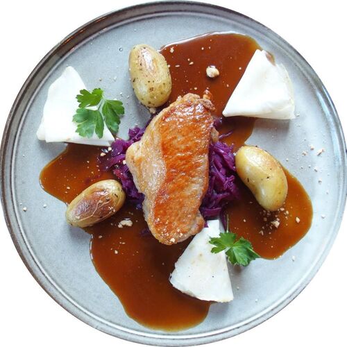 Her grandparents were hatmakers (hence the name), but Sophie’s love was cooking, a passion she now shares with her son Thomas. In a tastefully refurbished brick townhouse, the focus is on enhancing local produce courtesy of familiar flavours and elegant plating. For example, if rabbit is on the menu, it may be in a stew, or rolled and stuffed with meat and prunes, or as mashed potatoes drizzled with a creamy, mustard-spiked rabbit gravy. Rich gutsy sauces are something of the house hallmark. This hatmakers is a splendid marriage of heritage, know-how and down-to-earth, family hospitality.