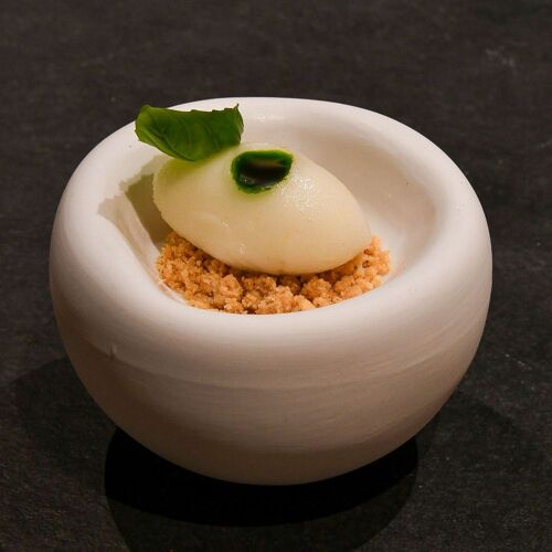 From Andora, one climbs up the hill along a series of hairpin bends and then, having left the car in the car park, the path continues to the restaurant. Vineyards facing the sea, olive groves and maritime pines in a lush corner of Liguria form the backdrop to Vignamare, created by recovering an abandoned and unused 1970s cistern. In fine weather there is a wonderful panoramic terrace, otherwise a modern wood-panelled dining room. The talented chef Alessandro Di Giacomo, originally from Caserta, has - recently - taken the reins of the kitchen, offering two tasting courses of 7 and 9 courses, not forgetting a totally “green” one. The technique is refined and the elaborations are very Mediterranean, gathering impeccable products and raw materials from the Ligurian land (most of them coming from the vegetable gardens and farms of the PEQ Agri farm, of which the restaurant is part). Obviously the Campania touch is evident in the menus, such as the courgette alla scapece or the excellent tortelli alla genovese. The Sunday brunch on their panoramic terraces is interesting.