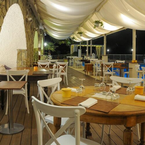 Situated just a few minutes from the seafront promenade in a quiet, residential district, this restaurant with a relaxing ambience serves delicious Ligurian cuisine with a focus on organic vegetables, fish and seafood (local whenever possible), and home-made bread, desserts and fresh pasta. In summer, meals are served by the swimming pool in the garden, while in winter, the welcoming covered veranda boasts extensive sea views.