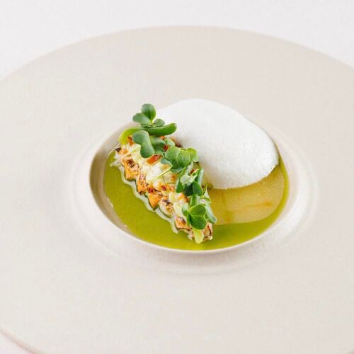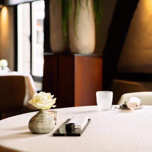 At Atelier, you never know what to expect. Creative Hans Kinkartz knows how to link familiarity with excitement and every dish has a surprise in store. A prime example is his pan-seared red mullet, with its crispy skin and juicy flesh, which he pairs with wonderfully briny mussels with layers of lardo di Colonnata. A barigoule sauce and an espuma with baharat seasoning add that extra depth and a burst of freshness. The smoky notes of barbecued pineapple are offset by the subtle bite of ginger, umeboshi and a beautiful quenelle of chai ice cream. Chef Kinkartz is known for his love of Asian flavours, which give his dishes that extra dimension. With creative abandon, this experienced craftsman gives classic cooking techniques a fresh, modern twist. Each and every dinner in this historical half-timbered house, with its elegant symbiosis of contemporary design and industrial austerity, comes with its own surprises. Hostess Ellen, whose passion for wine is infectious, offers exceptional pairings. Atelier is synonymous with bespoke culinary craftsmanship.