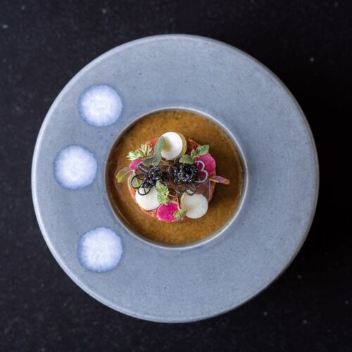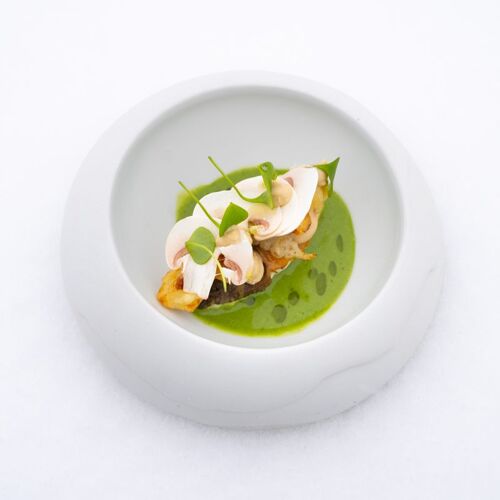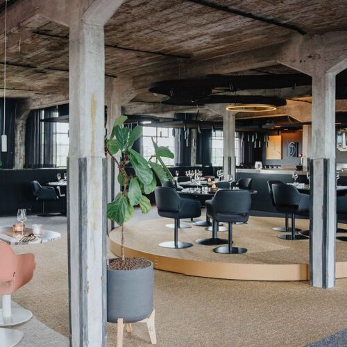 Rodny Welters has created his own little world on the fifth floor of this factory building in Maastricht's Sphinxkwartier. Rugged surfaces meet stylish upholstery here in a tasteful symbiosis. All eyes are on the open kitchen, where chef Welters lets his cooking do the talking; his culinary creations draw inspiration from around the globe, underpinned by exquisite sauces. With dishes such as haddock à la meunière with a tandoori velouté or fried scampi with a red curry and coconut milk sauce, the "Experience" set menu certainly lives up to its name.