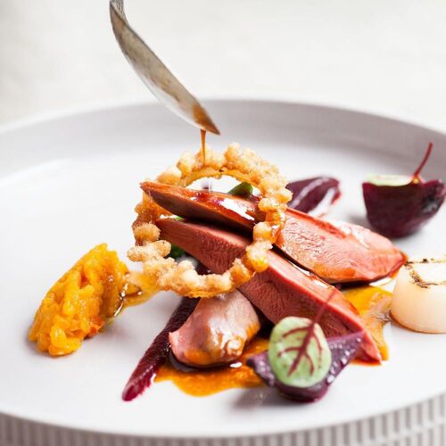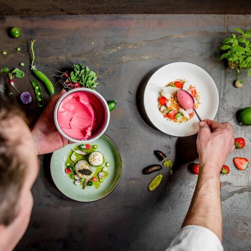 Jan Marrees's trademark is his relaxed approach to gastronomy. A glance at his extensive menu (there are also two set menus, one of them vegetarian) will bring a smile to the face of any foodie. You can opt for one of the chef's specialities such as the crispy fried sweetbreads with an intense veal jus and fruity notes of apple and apricot. Alternatively, there is a variety of small, modern delicacies. Zesty and bitter, powerful and delicate, creamy and crispy: every dish is an exciting interplay of flavours and textures made with top-quality ingredients. This is a chef who certainly does not shy away from contrasts and really showcases his talent in the process. The way he puts his own spin on a dame blanche sundae while respecting classic flavours cannot fail to impress.