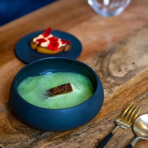 This restaurant, just a few metres from Praça Marquês de Pombal, might slip under the radar thanks to its small and discreet entrance; however, it surprises visitors with a carefully designed bistro-style interior, subtle lighting, and design touches that bring nature to mind (branches, trunks, roots, beautiful plant-inspired lamps...). At the helm, Chef Guilherme Sousa champions Portuguese cuisine, not without international twists, expressed through two surprise tasting menus (5 or 8 Courses), both with vegetarian options.