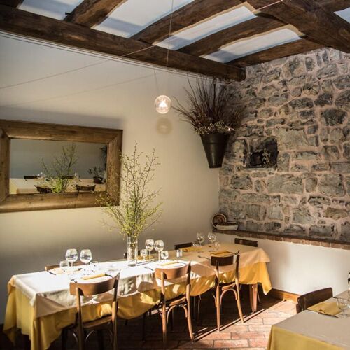 Situated in a picturesque village in the Val Serina, this family-run restaurant has a welcoming ambience. The menu features a small selection of mostly local dishes, including specialities such as bresaola orobica, cured hams and cheeses, casoncelli pasta, mushrooms and, of course, polenta prepared in different ways (Bergamo or Taragna style, simply, with strachitunt cheese, or with fried eggs). Enjoy dining on the panoramic terrace in fine weather.