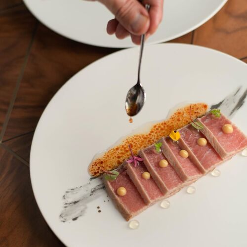 Nobuya boasts a minimalist elegance that is typical of Japanese restaurants, with brown tables, dark wooden beams on the ceiling, attractive subdued lighting, plus an illuminated wine cabinet to add a touch of colour. Here, the talented Japanese chef creates top-quality cuisine using the freshest ingredients. At lunchtime, there’s also a lighter “Bento box” and an omakase tasting menu (“Mi affido a te”) which is completely vegetarian.