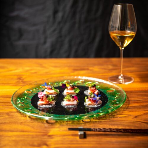 Although the contemporary, minimalist-style decor is typical of Japanese restaurants, the cuisine will come as more of a surprise, with its magical blend of classic Japanese dishes made from Mediterranean ingredients, beautifully presented and full of flavour. There are two dining rooms: one overlooking the road, and the other with an open-view kitchen and sushi bar, where the chef serves an evening tasting menu for guests happy to put their faith in his imaginative improvisational skills.