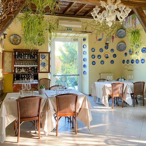 This old monastery in Moirago, overlooking the Naviglio Pavese canal, was founded in 1250 and converted into an inn as early as 1478. Centuries may have passed, but the tradition of hospitality continues in the building’s enclosed painted portico, as well as in its two warm and atmospheric dining rooms. The chef’s Puglian origins explain the abundant use of vegetables and raw fish dishes, while in winter the cuisine takes on a more northern Italian flavour. Good selection of wines by the glass.