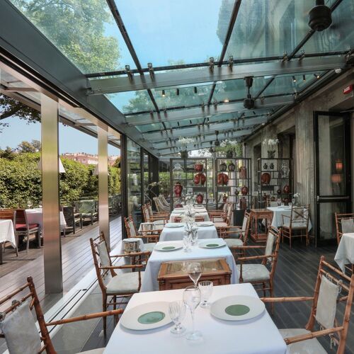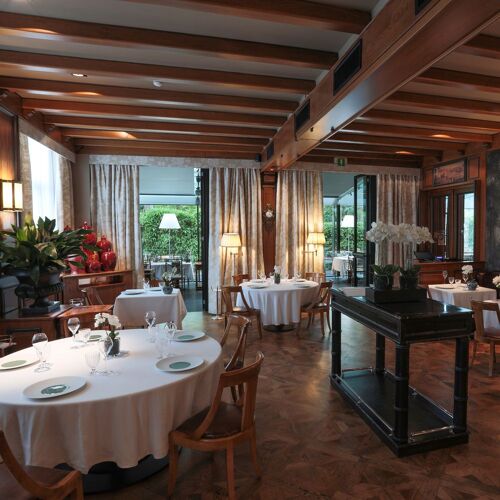 Situated opposite the Villa Reale, this restaurant has the same classic, vaguely British ambience as the Hotel de la Ville in which it is situated, with tables also laid out in its elegant adjoining veranda. There are two tasting menus available: “Viaggio alle origini”, which focuses on recipes inspired by the cuisine of Campania (the chef’s native region), and “Il territorio... secondo me”. Dishes can be chosen individually from both menus, along with the addition of a few traditional recipes from Lombardy. Many of the vegetables are grown in the restaurant’s own organic garden.